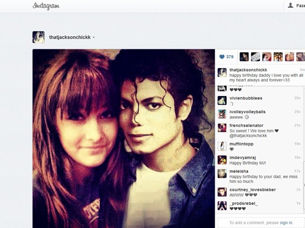 Paris Jackson publicou em seu perfil no Instagram uma foto ao lado de um cartaz com o rosto de seu pai, que completaria 54 anos nesta quarta-feira (29). "Parabéns papai, eu te amo com todo o meu coração para sempre", escreveu Paris. O rei do pop morreu em junho de 2009.